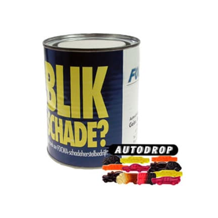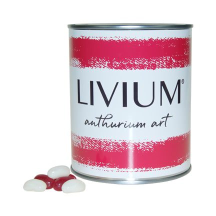 Verfblik met hersluitbaar deksel, als verrassing gevuld met lekkers naar keuze, dat is nog eens wat anders dan verf! Gepersonaliseerd met een full colour bedrukte wikkel met uw bedrijfsnaam of logo komt u mooi voor de dag bij uw klanten en relaties. Afhankelijk van de inhoud, is deze minimaal 12 maanden houdbaar.