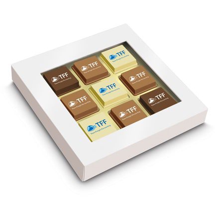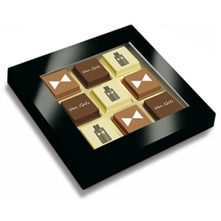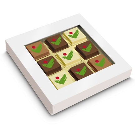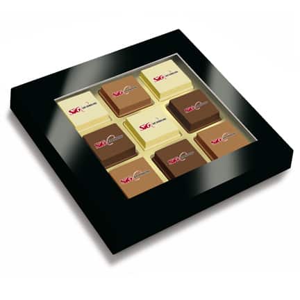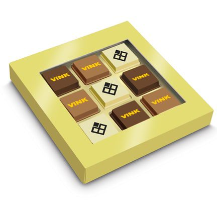 Kies dan Logobonbons, bedrukt met uw bedrijfslogo zijn deze bonbons niet alleen heerlijk maar ook nog prachtig om te zien. Bijna te mooi om op te eten! Verpakt per negen stuks logobonbons in een doosje met transparante window. Keuze uit 3 smaken chocolade of een combinatie hiervan: puur, melk of wit. Vulling: puur-hazelnoot, melk-espresso, wit-caramel crunch.