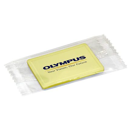 Chocolaatje met logo per stuk verpakt in een transparante flowpack. Bedrukt met uw logo is dit een zalig weggevertje aan klanten voor bij de koffie of thee.