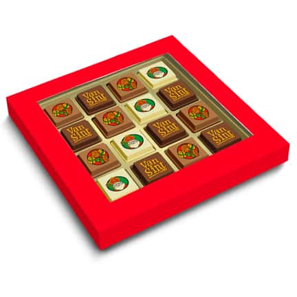 U kunt kiezen uit standaard Sintbedrukkingen op de bonbons, maar u kunt ook uw logo op een bonbon laten drukken. Op de witte bonbon kan uw logo full colour geprint worden, in combinatie met de vrolijke sint of piet bedrukking op de melk en pure bonbon, is het eindresultaat prachtig! Bijna te mooi om op te eten! Verpakt per 16 stuks logobonbons in een doosje met transparante window.