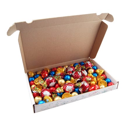 Inhoud: ca. 250 gram per stuk verpakte chocolade Kerstmix.