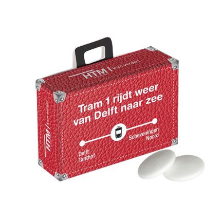 Voor alle reislustigen onder ons, hebben we een gepersonaliseerd Koffertje met frisse pepermunt als give-away!
