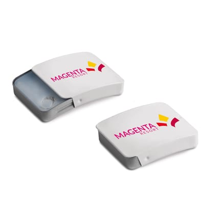 Schuifblikje gevuld met ca. 10 gram mini pepermuntjes incl. ingrediëntensticker en seal. Bedrukt met uw bedrijfslogo is dit een leuk weggevertje. Daarbij is de houdbaarheid 36 maanden, dus een handig artikel om op voorraad te nemen.