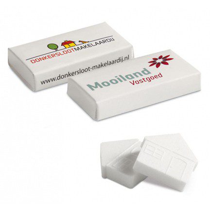 Als makelaar of bouwbedrijf op zoek naar een bedankje voor uw (toekomstige) klanten? Kies dan all-over full colour gepersonaliseerde doosjes met als inhoud 2 pepermuntjes in de vorm van een huisje. Dat is wel heel toepasselijk voor uw branche. Klanten zullen blij verrast zijn en uw naam blijft positief in beeld!