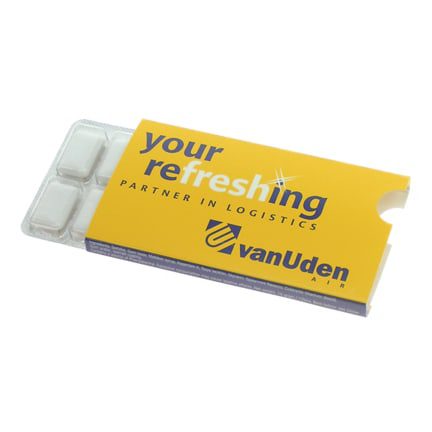 Op zoek naar een frisse gepersonaliseerde give-away? Kies een kauwgomblister in een sleeve met bedrukking. All-over full colour bedrukt met uw bedrijfsontwerp, logo en/of reclametekst maakt u hiervan een persoonlijke frisse give-away. Laat uw creativiteit de vrije loop voor het artwork!