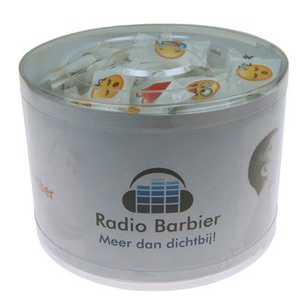 Transparante grote Snoepsilo met een bedrukte wikkel aan de binnenzijde. Gepersonaliseerd met uw logo & reclametekst is de silo ideaal als promotiemiddel met veel ruimte voor uw promotionele tekst.