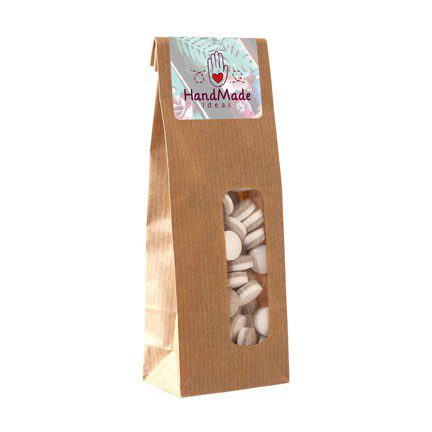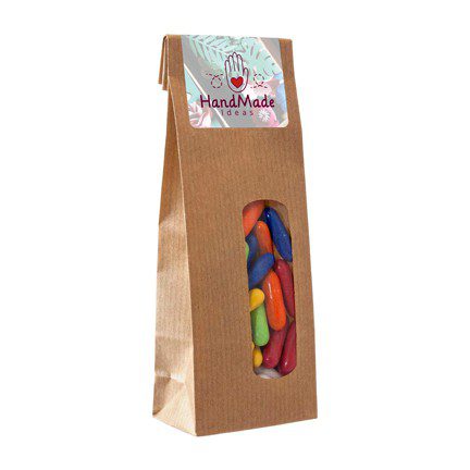 Stoer kraft Snoepzakje met gepersonaliseerde sticker als zoet bedankje voor klanten. Bedrukt middels een full colour sticker.