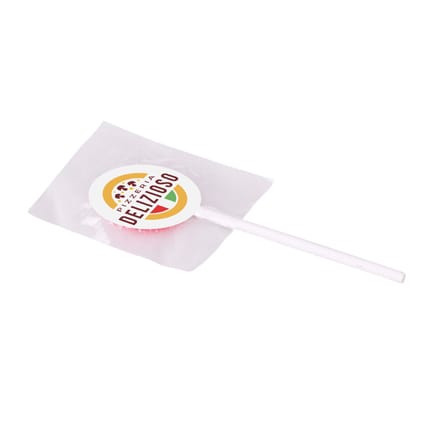Smaakvolle Lolly in transparante folie, bedrukking d.m.v. een full colour logo sticker. De sticker is geheel naar eigen ontwerp met uw logo. Een ideaal artikel als weggevertje tijdens een beurs of evenement.