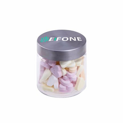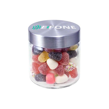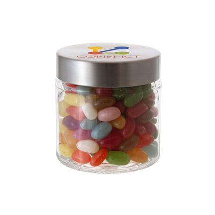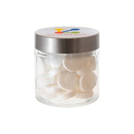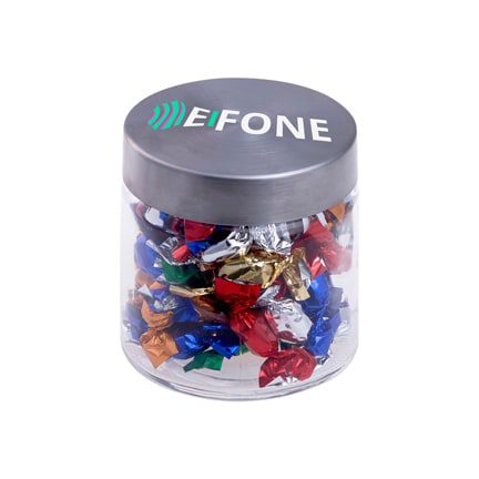 Uw klanten bedanken met een robuust bedankje? Dan is dit stoere glazen Snoeppotje met RVS schroefdeksel een goede keuze! Bedrukt met uw logo, bedrijfsnaam of slogan een echte blikvanger. Gevuld met door u gekozen lekkers, daar blijf je van snoepen 🙂